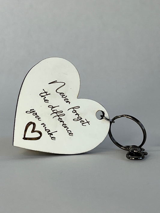 Heart Shaped Keychain "Never Forget the Difference You Make"