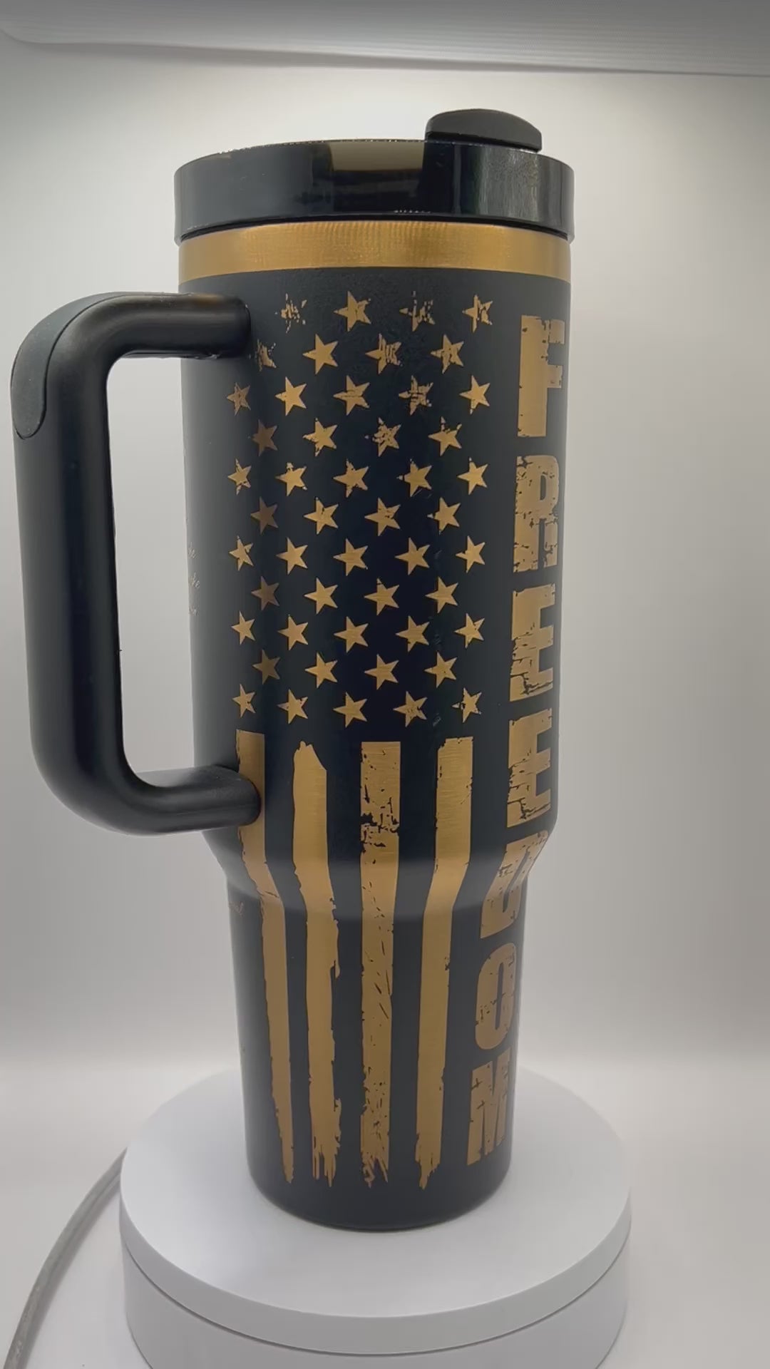 Sip your patriotism with the Freedom 40 oz Tumbler featuring a full wrap design of the American flag and Constitution. Enjoy freedom in every sip while keeping your drink at the perfect temperature. Perfect for any patriotic occasion, this tumbler is sure to be a conversation starter.